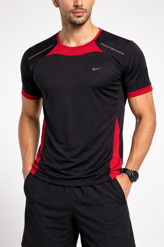 Siyah Kırmızı Kısa Kollu Spor Tişört
