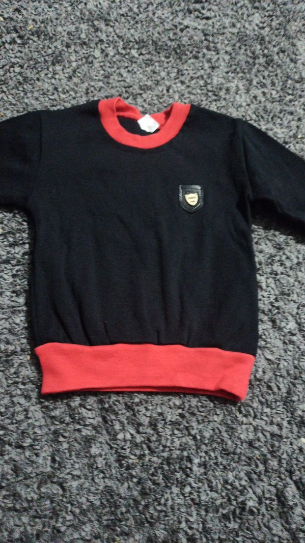 Erkek çocuklar için uzun kollu, bisiklet yaka ve fitted kesim sweatshirt. Siyah gövde, kırmızı yaka ve etek ucu detayları ile düğmeli küçük aksesuar içerir. Yumuşak kumaştan üretilmiştir.