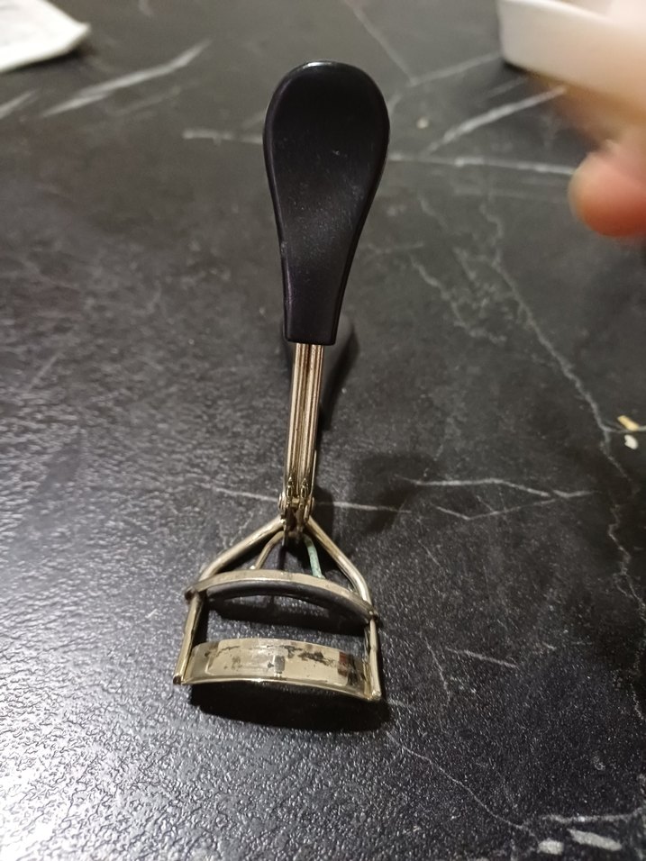 Kirpikleri şekillendirmek için koyu renk saplı siyah kirpik kıvırıcı. ✨