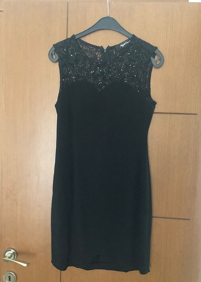 İki kere giyildi. Siyah üstü dantelli kısa elbise