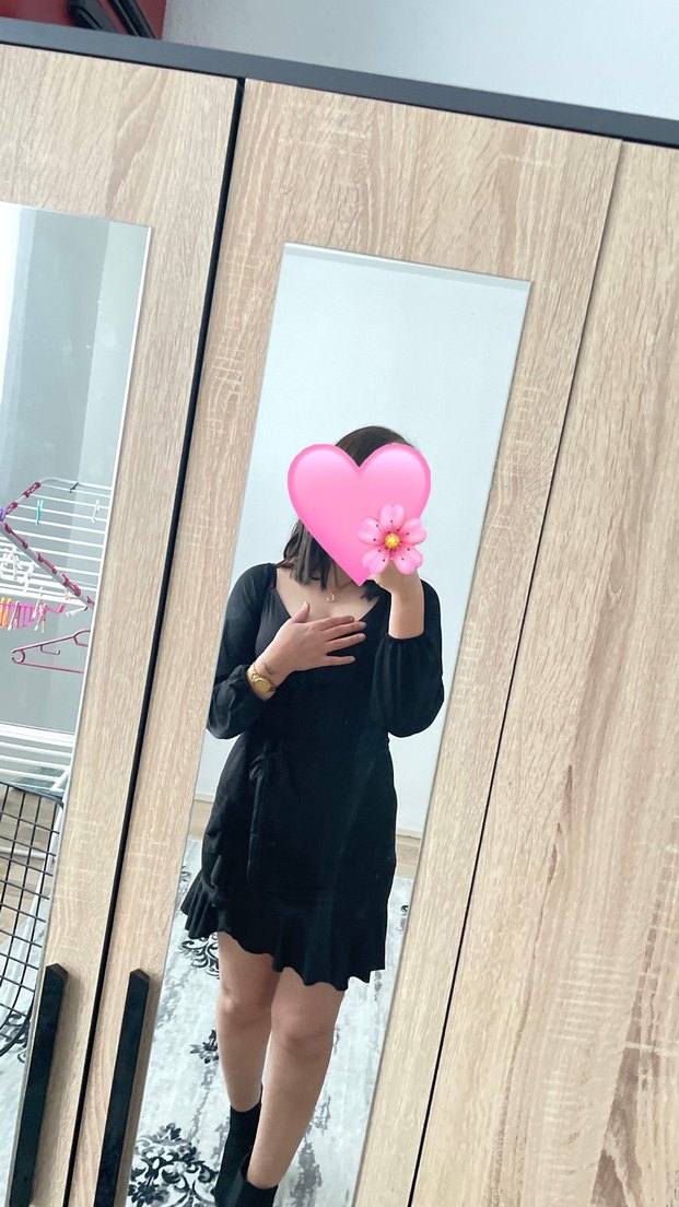 Siyah kısa fırfırlı elbise