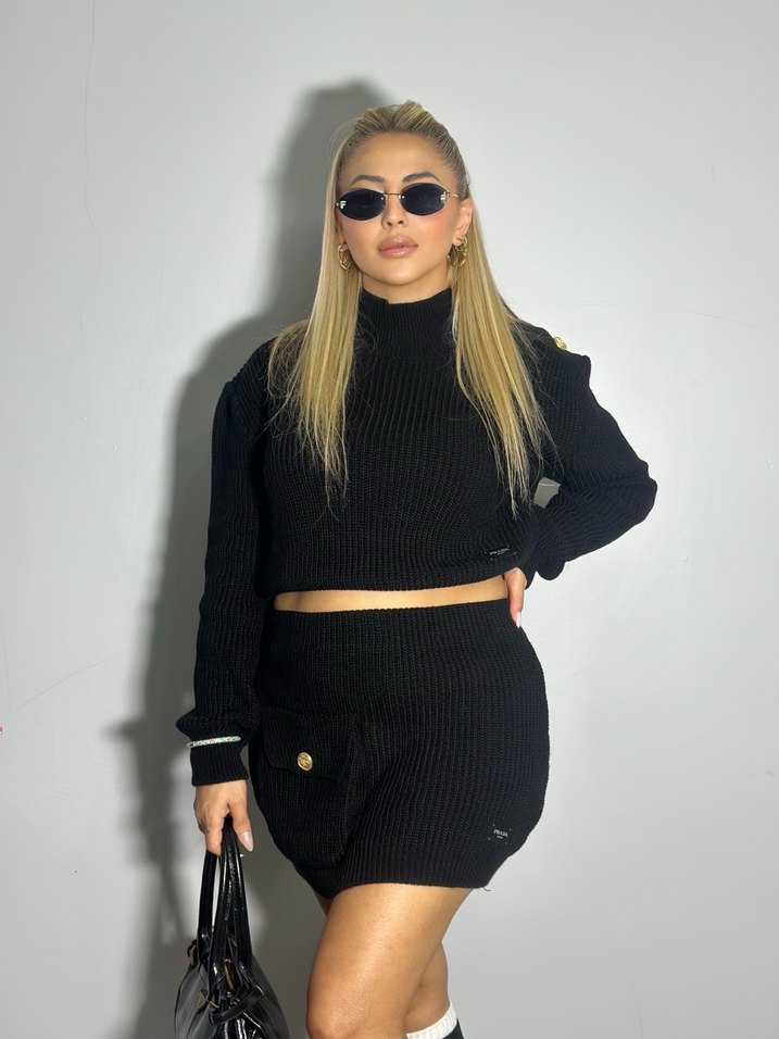 Siyah Kısa Fit Triko Kadın Takım