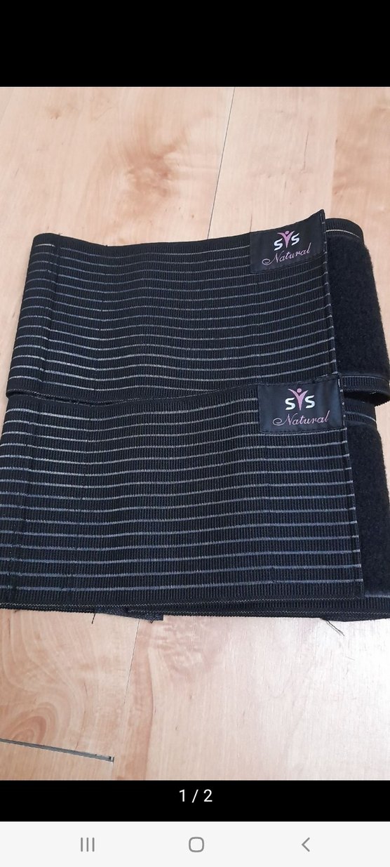Siyah, kısa boylu, vücuda oturan göğüs korsesi, elastik bantlarla destek sağlar. SYS Natural markalıdır.
