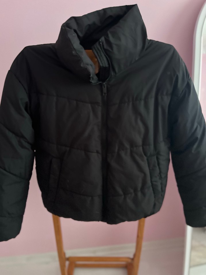 Yumuşak kürk dokusuna sahip siyah kısa kadın kışlık mont, yüksek yakalı ve fermuarlı. Uzun kollu ve dar kesim, günlük rahat sokak stiline uygun. Desensiz ve sıcak tutar.