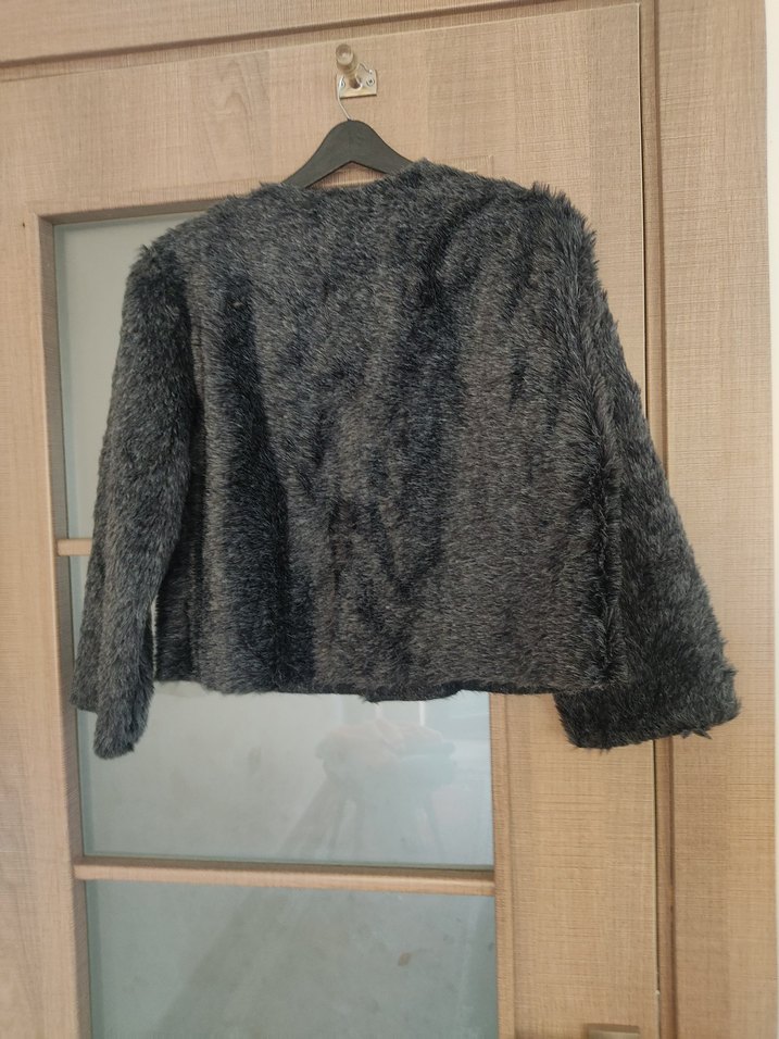 siyah renkli, kısa boy kadın suni kürk ceket, uzun kollu ve yuvarlak yakalıdır. Rahat kesim ve yumuşak dokusuyla günlük sokak stiline uygundur.