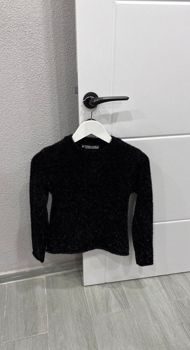 Siyah renkte, uzun kollu, kısa kesim ve fitted tasarıma sahip triko kadın kazak, günlük rahat sokak stili için uygundur.