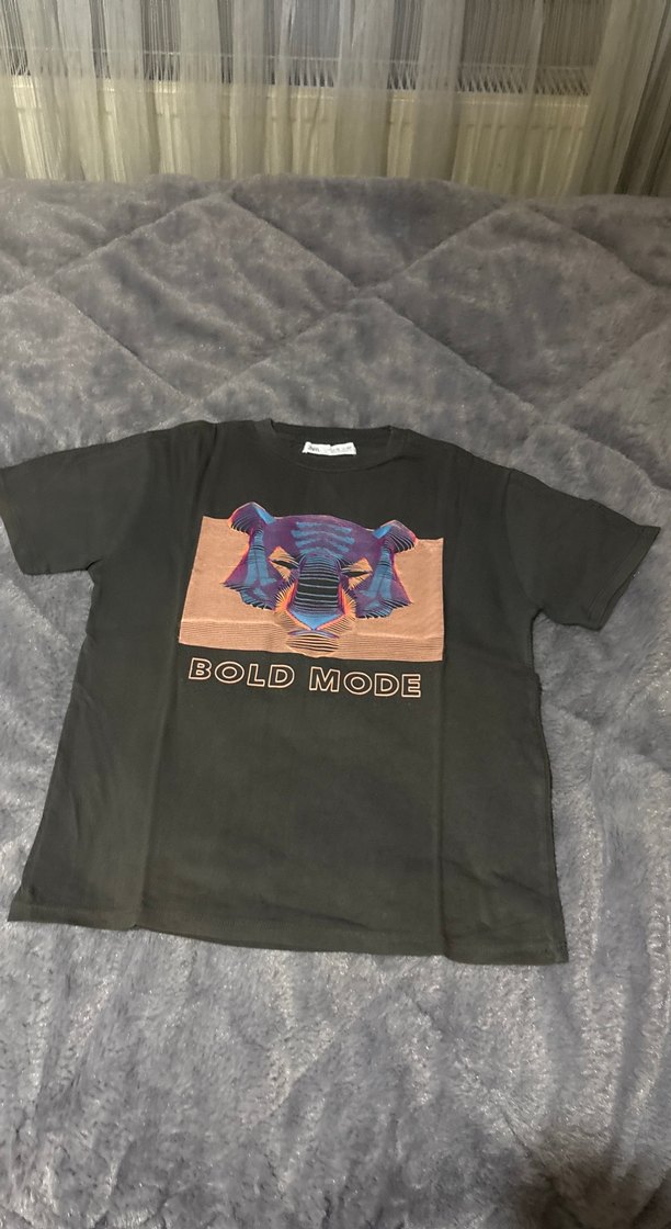 Siyah kısa kollu, yuvarlak yakalı, bol kesim erkek çocuk tişörtü , baskılı cesur kaplan deseni ve 'BOLD MODE' yazısı ile