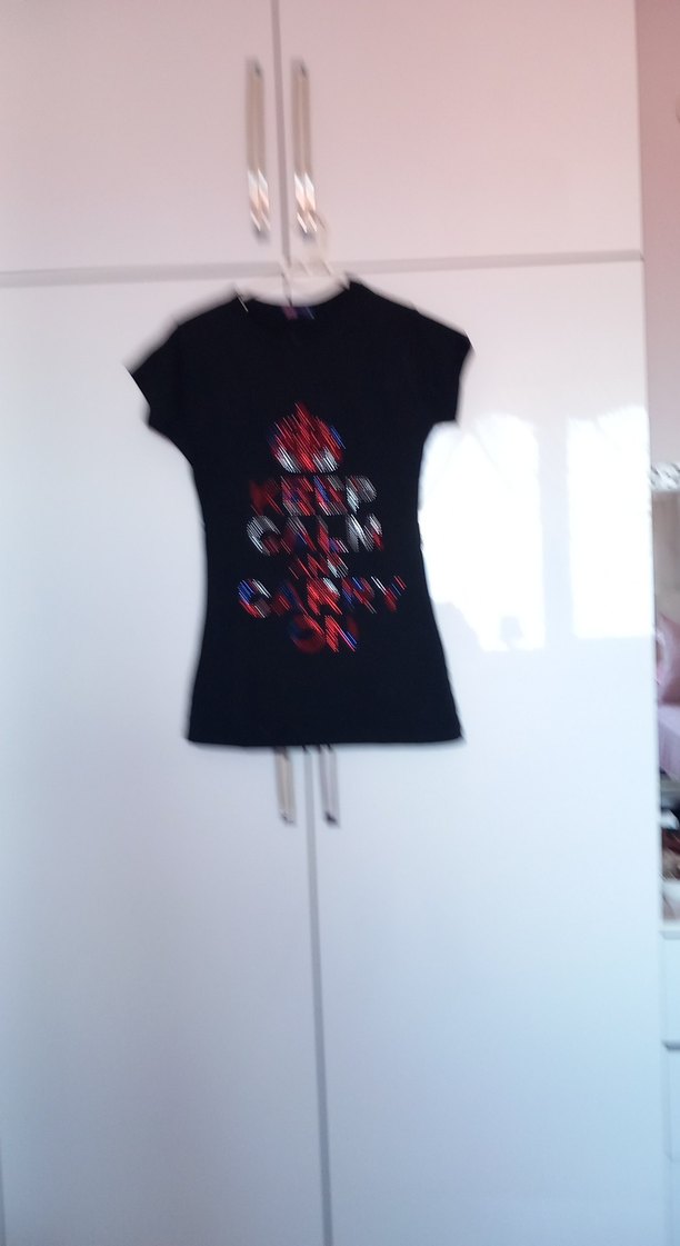 siyah, kısa kollu, baskılı gotik tarzda, kemerli ve sentetik kumaştan yapılmış dar kesim tişörttür. ⁷