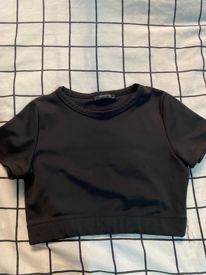 Daha çok spor için uyumlu terletici bir kumaşı var M olduğuna bakmayın kalıbı dar s daha uyumlu Siyah, kısa kollu, yuvarlak yakalı, vücuda oturan crop top. Düz ve pürüzsüz sentetik kumaştan, günlük ve sokak stiline uygun.