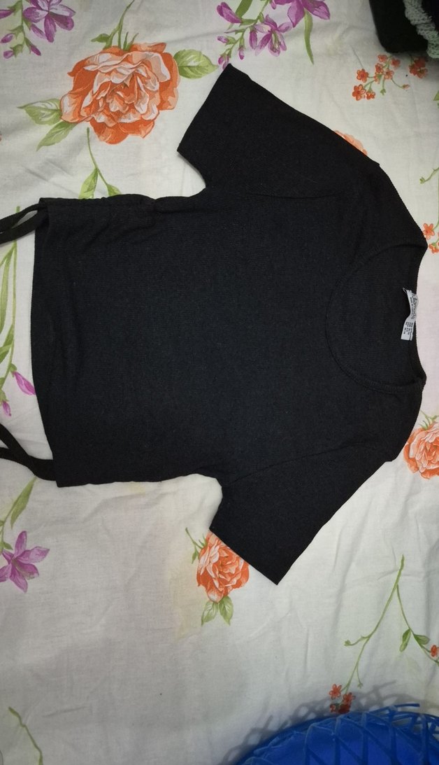 Siyah Kısa Kollu Crop Tarzı ip detaylı S-M Kız çocuk içindeuygun