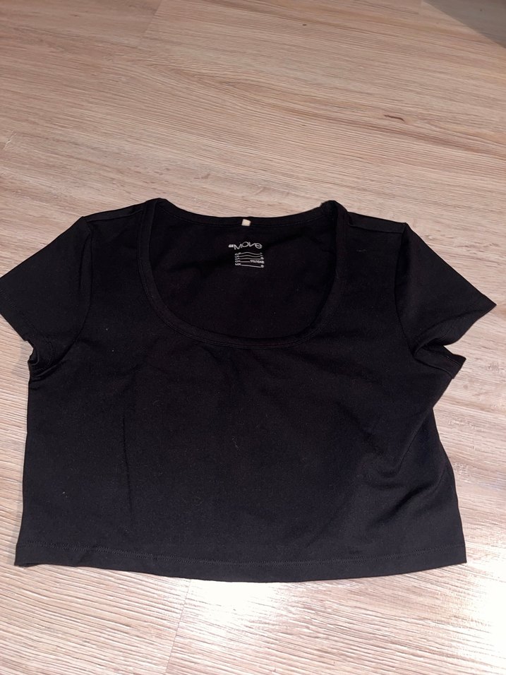 Siyah, kısa kollu, yuvarlak yakalı ve vücuda oturan crop top. Düz ve yumuşak sentetik kumaştan, günlük kullanıma uygun rahat bir parça. ✨