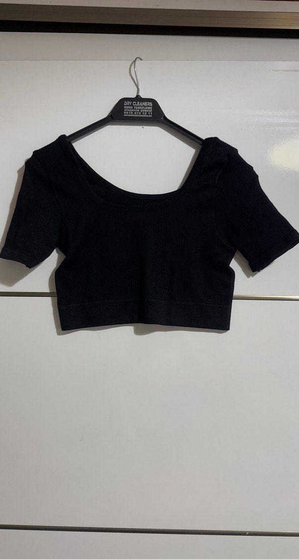 Siyah, kısa kollu ve yuvarlak yakalı bu crop top, şık ve rahat sentetik kumaştan yapılmıştır. Kısa boyu ile günlük sokak modasına uygundur. ✨