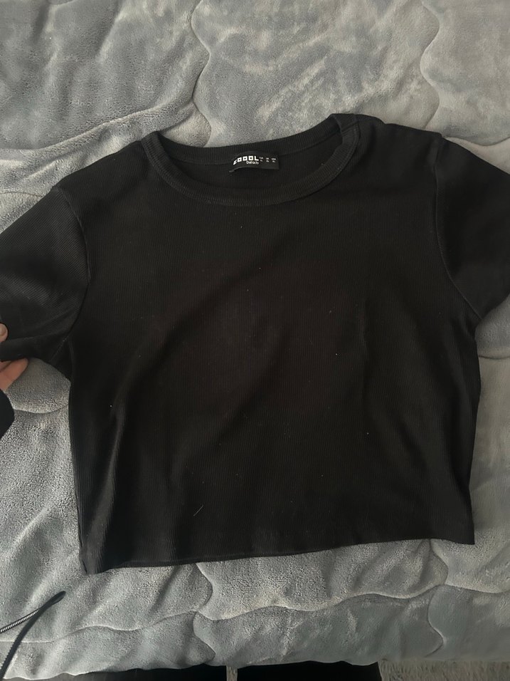 Siyah crop top, kısa kollu ve yuvarlak yakalıdır. Nefes alabilen keten kumaştan yapılmıştır. Vücuda oturan kesimi ve normal boyuyla günlük sokak stiline uygundur.