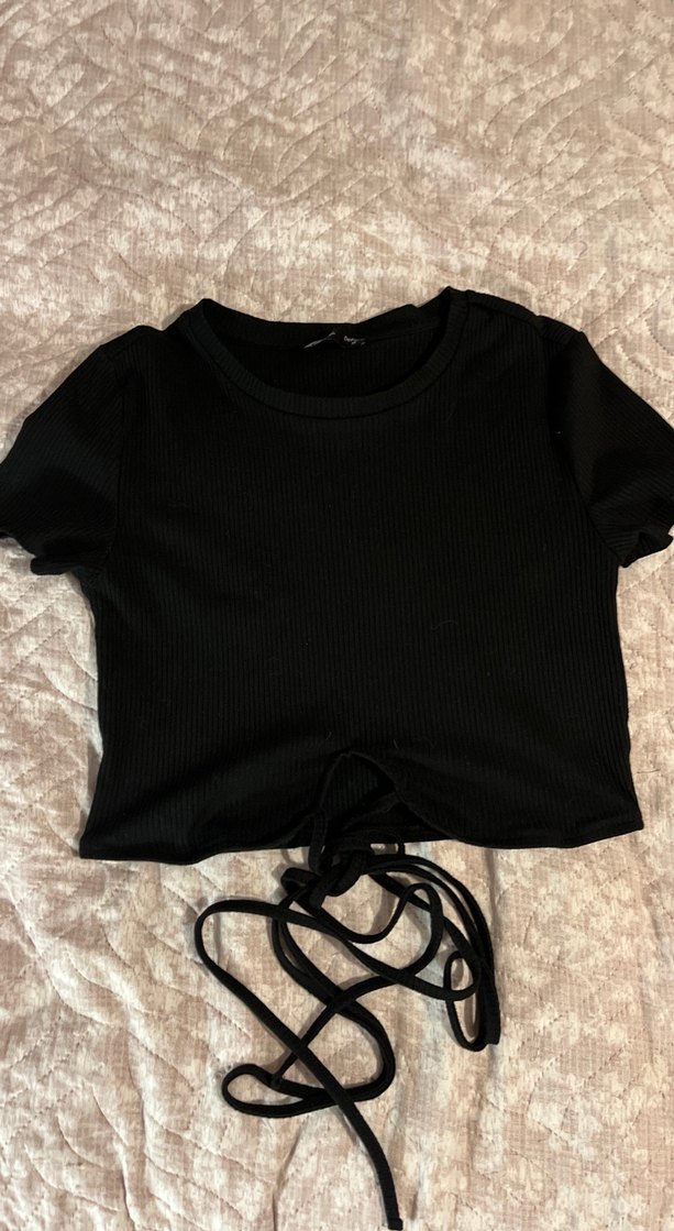 Defacto siyah kısa kollu, önü bağlama detaylı crop top