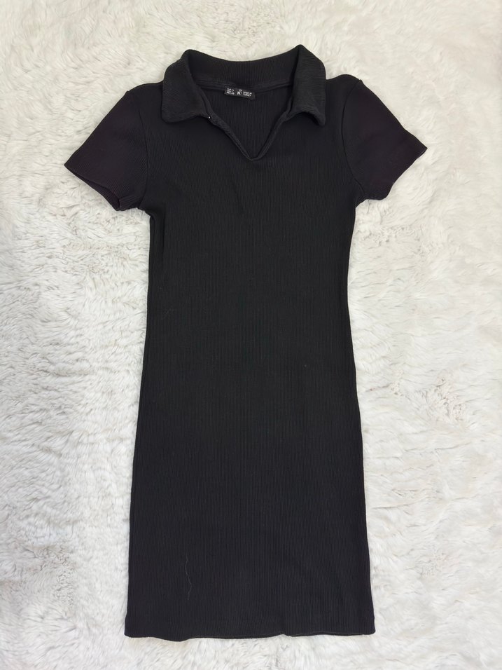 Siyah, mini, kısa kollu ve yakalı, vücuda oturan midi elbise, gündelik kullanıma uygun şık ve sade. Ürünün yaka tarafında görseldeki gibi çok hafif solma mevcut. Ürün L beden fakat S beden için de uygundur. Vücudu saran dar kalıplıdır. Fiyat teklifine açığım. Üniversite öğrencisi olduğum için hafta içi evimde değilim; bu yüzden siparişlerinizi sadece Cumartesi günleri kargoya verebiliyorum. Sabrınız, desteğiniz ve anlayışınız için şimdiden çok teşekkürler! Keyifli alışverişler dilerim. ❤️