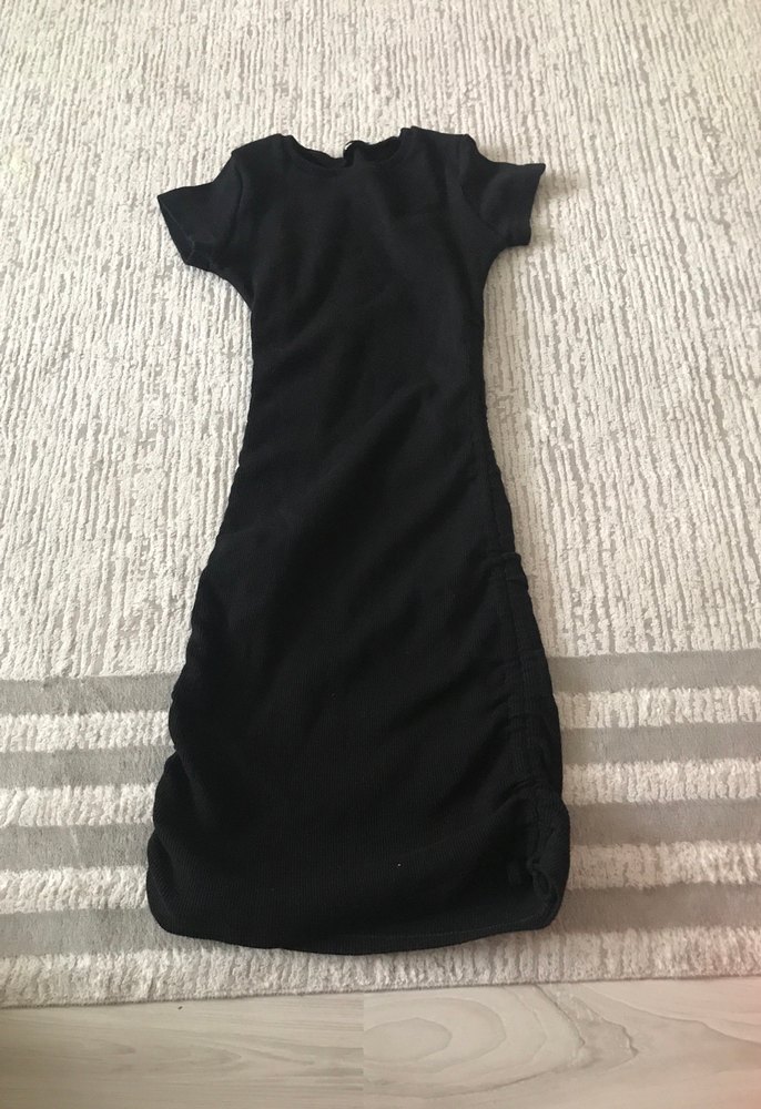 Siyah Kısa Kollu Drapeli Midi Elbise