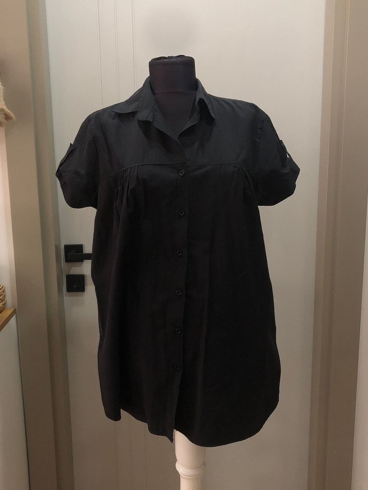 Siyah Kısa Kollu Düğmeli Kadın Gömlek