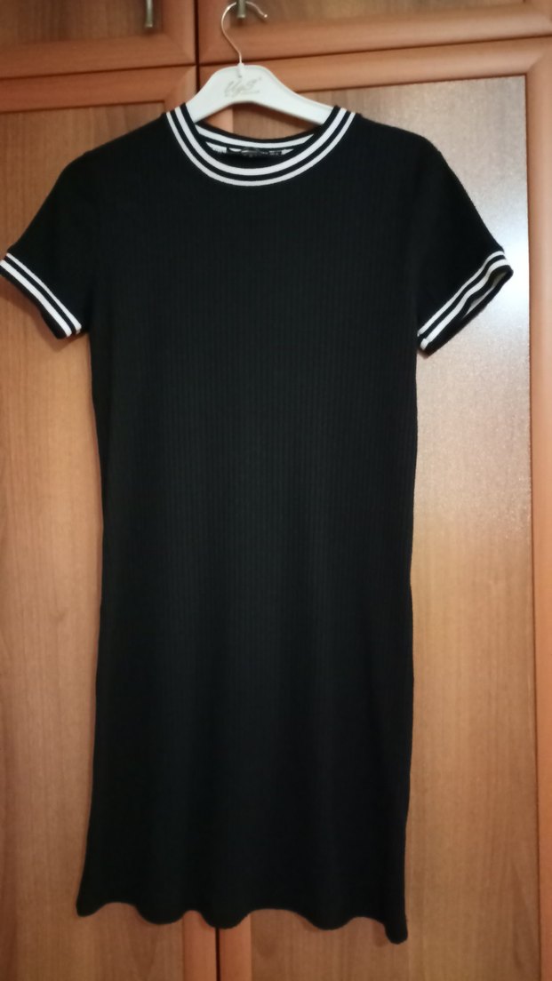 Kısa kollu, yuvarlak yakalı siyah midi elbise, fit kesim ve plise detaylı sentetik kumaştan üretilmiştir. Günlük kullanıma uygundur. boyu diz kapaginin bi tik üstüne geliyo. defosuz