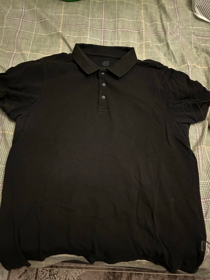 Siyah renkli, yakalı ve düğmeli erkek polo tişörtü. Kısa kollu