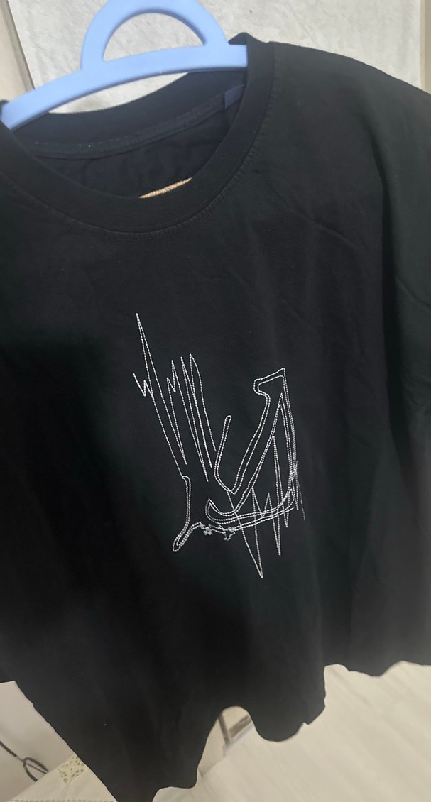 Pamuklu, siyah kısa kollu, bol kesim tişört, baskılı desenli ve yuvarlak yaka. Günlük kullanım için uygun, sokak modası tarzında.