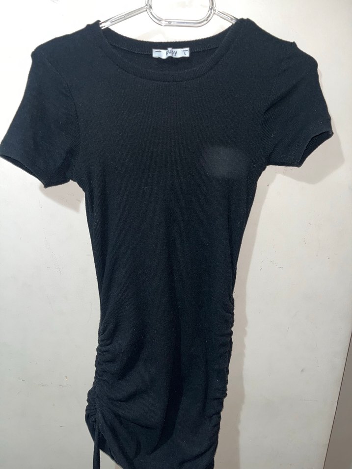 Kısa kollu, yuvarlak yaka, siyah fitted midi elbise. Yumuşak keten kumaştan, desen içermeyen minimalist tasarım. Günlük kullanıma uygun rahat ve şık.