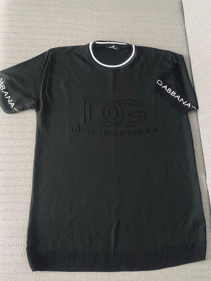 Siyah kısa kollu, yuvarlak yaka, bol kesim tişört. Kollarında ve göğsünde GABBANA baskısı bulunur, sentetik yumuşak kumaştan üretilmiştir.