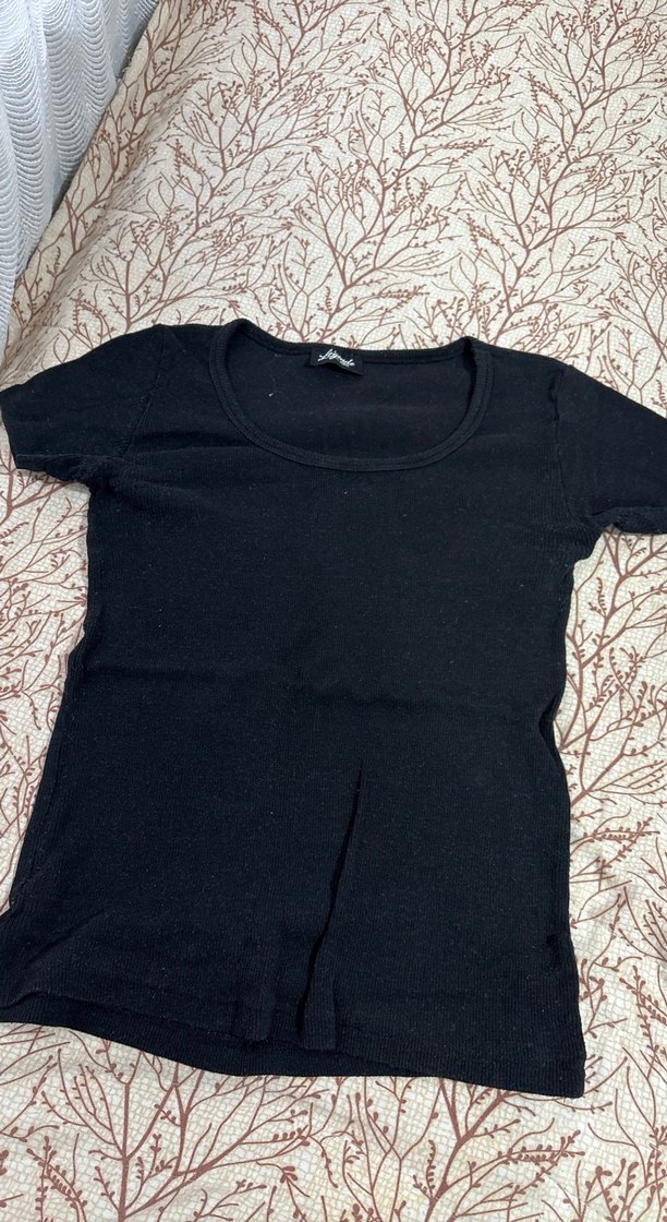 Pamuk kumaştan, kısa kollu ve yuvarlak yakalı siyah hamile tişörtü. Minimalist ve sade tasarıma sahip, günlük kullanım için uygun.