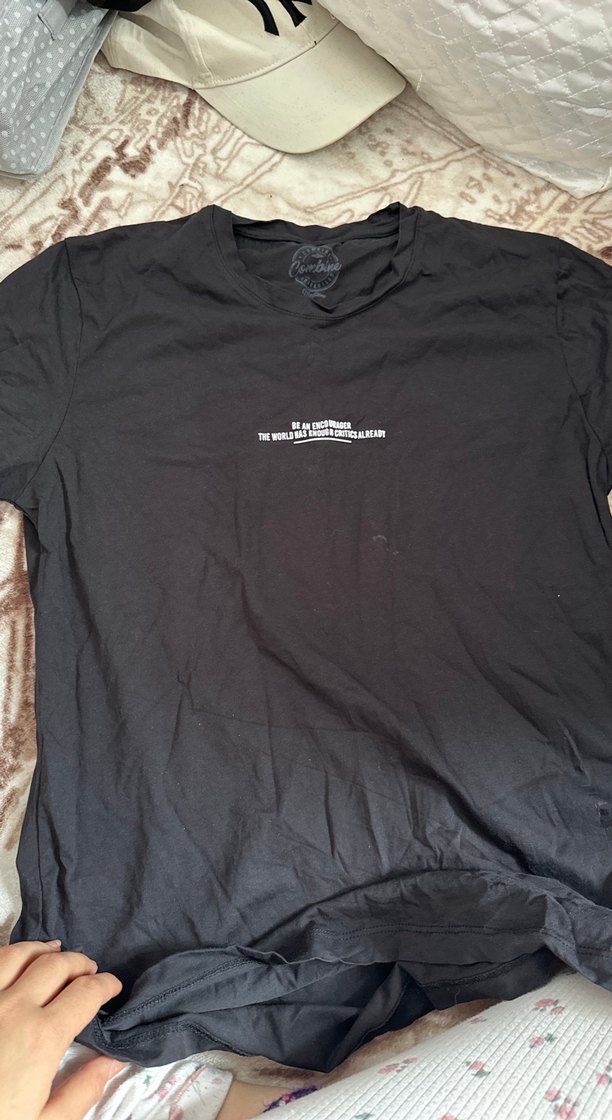 Siyah renkli, kısa kollu, yuvarlak yaka hamile tişörtü. İpek gibi yumuşak kumaştan, salaş kesimle günlük rahat kullanım için uygundur.
