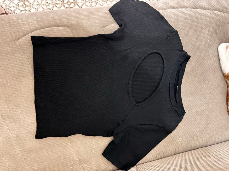 Siyah, kısa kollu, vücuda oturan hamile tişörtü, rahat sentetik kumaştan, midi boyda ve desensiz, günlük kullanıma uygun.
