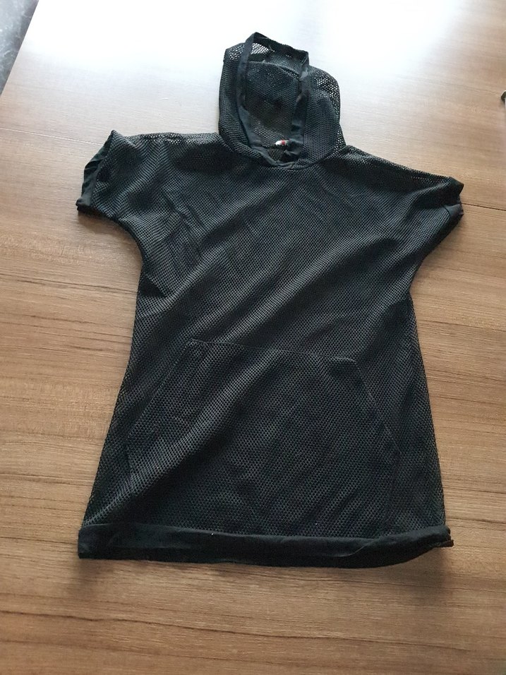 Siyah Kısa Kollu Kapüşonlu Kadın Tişört