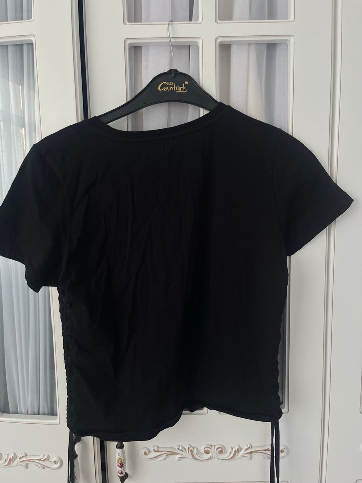 Siyah kısa kollu, bisiklet yaka ve baskılı desenli keten tişört. Günlük kullanıma uygun rahat ve şık bir sokak stili sunar. ✨