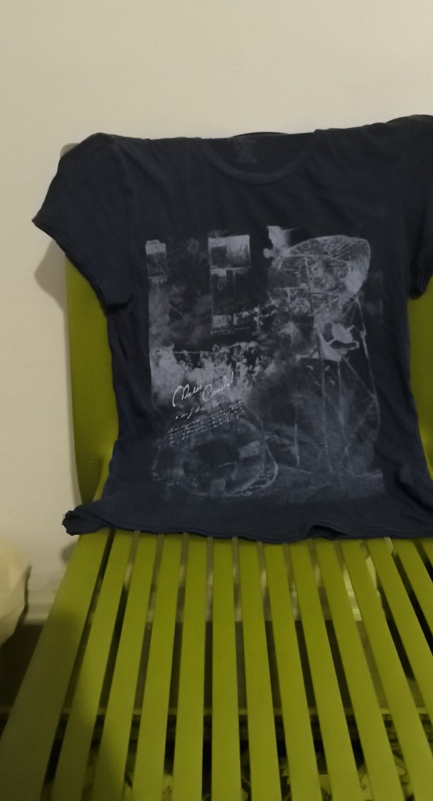 Bu bol kesim ve kısa kolludur. Denim kumaştan yapılmış koyu mavi renkte baskı desenlere sahiptir.Grunge punk tarzını yansıtır kısa boyda bir tişörttür