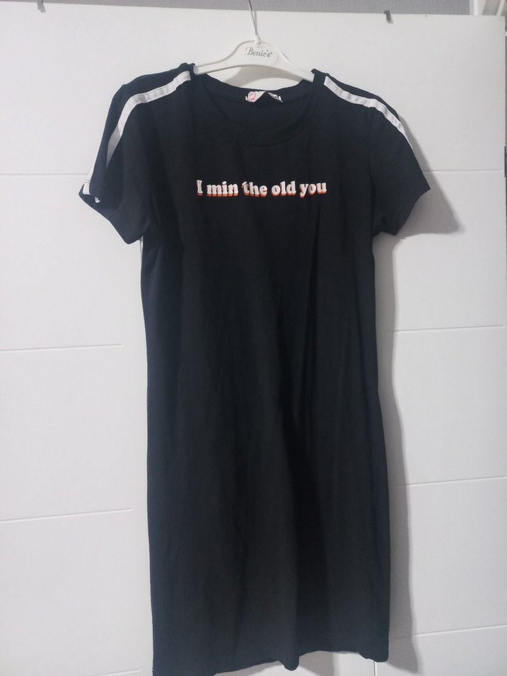 Siyah, pamuklu kumaştan, kısa kollu ve bisiklet yaka, vücuda oturan midi elbise. Omuzlarda beyaz şeritler ve göğüste "I min the old you" baskısı bulunur. Yanında yırtmaç vardır.