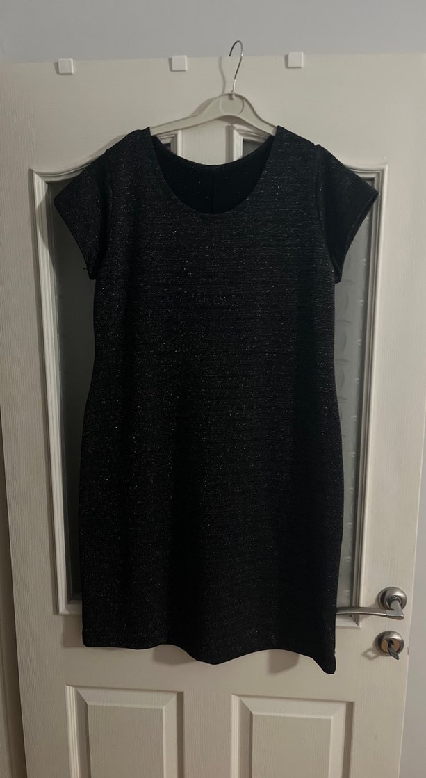 Siyah midi triko elbise, kısa kollu ve yuvarlak yakalıdır. İnce yapısıyla minimalist gotik tarzda, günlük kullanıma uygun şık bir görünüme sahiptir.