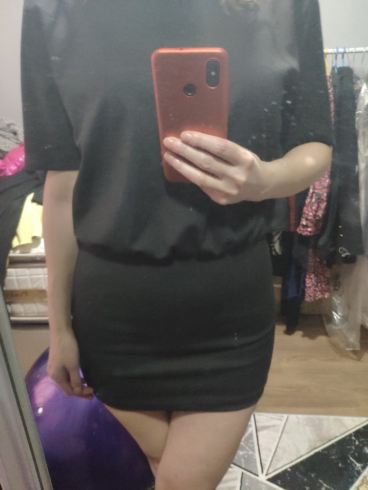 Düz siyah, kısa kollu, bisiklet yaka mini elbise. Sentetik kumaştan, günlük kullanıma uygun rahat ve şık bir model.
