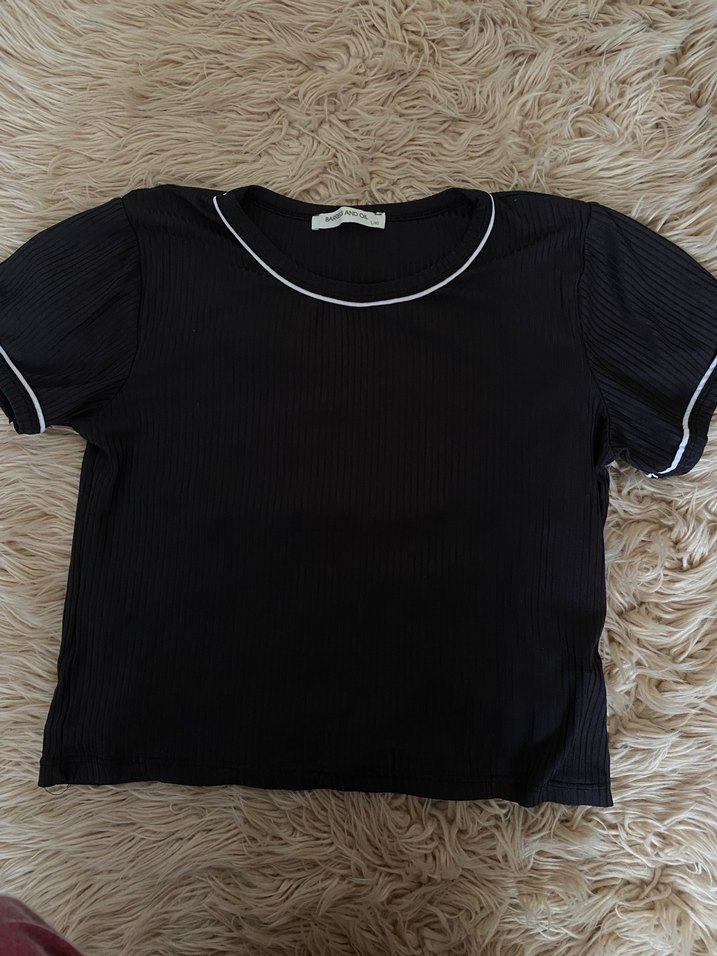 Siyah, kısa kollu, yuvarlak yakalı mini uzunlukta, vücuda oturan, sentetik kumaştan üretilmiş tişört. Günlük sokak stiline uygun şık ve rahat.
