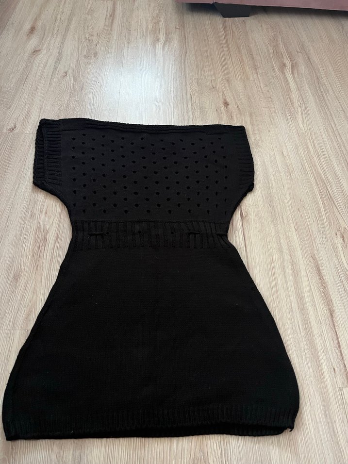 Siyah, kısa kollu, balıkçı yaka triko süveter . Vücuda oturan kesimi ve sade deseniyle günlük kullanıma uygundur.