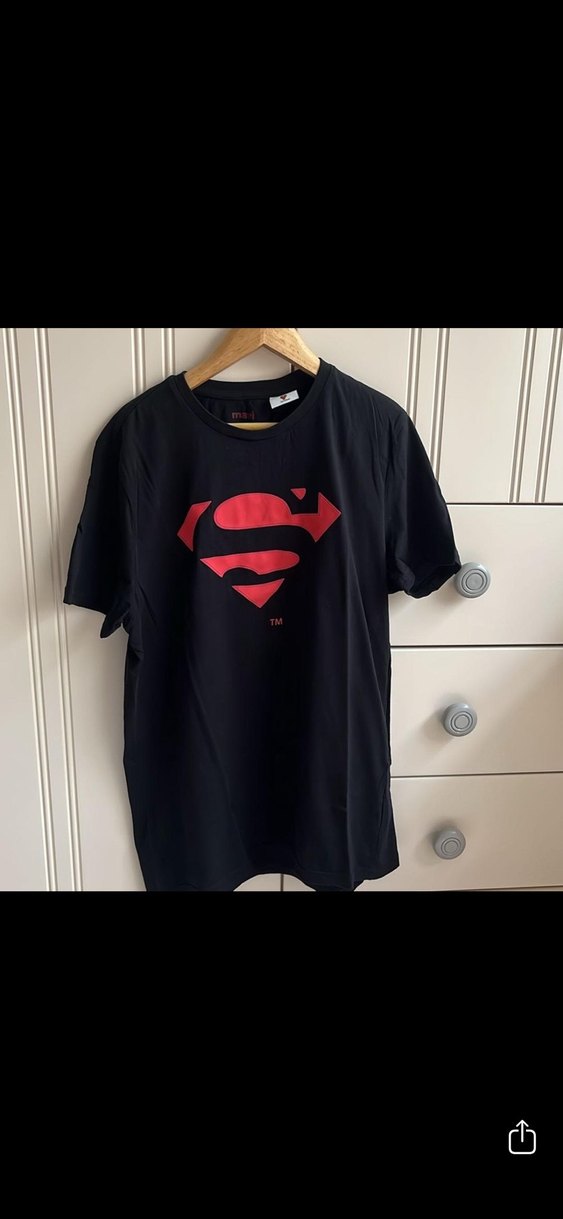 Siyah, kısa kollu, fitted kesim erkek tişörtü, önünde kırmızı Süperman baskısı ve düğme detayları bulunur. Sentetik kumaştan üretilmiştir. 13 14 yaş uyumludur