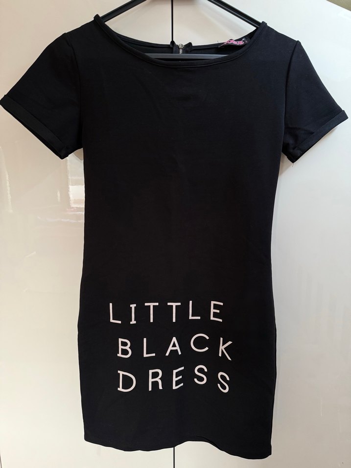 Siyah tişört elbise, kısa kollu ve yuvarlak yakalıdır. Rahat kumaştan üretilmiş olup günlük kullanıma uygundur. Vücuda oturan bir yapıya sahiptir.