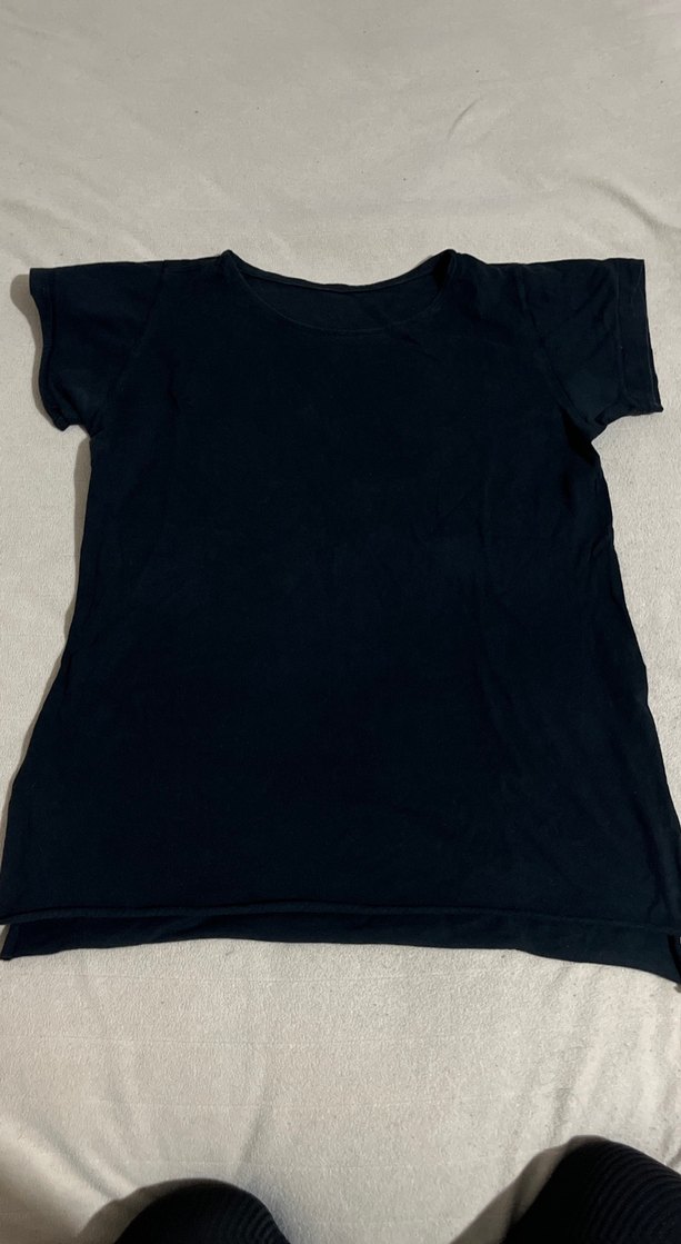 Kısa kollu, yuvarlak yakalı, bol kesim ve normal boyda siyah tişörtü. Keten kumaştan, günlük kullanıma uygun sade goth tarzı.