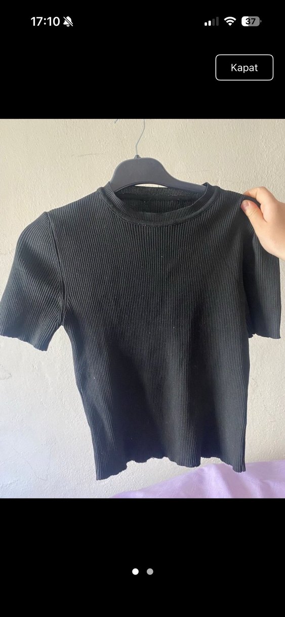 Siyah Kısa Kollu Triko Kadın tişört