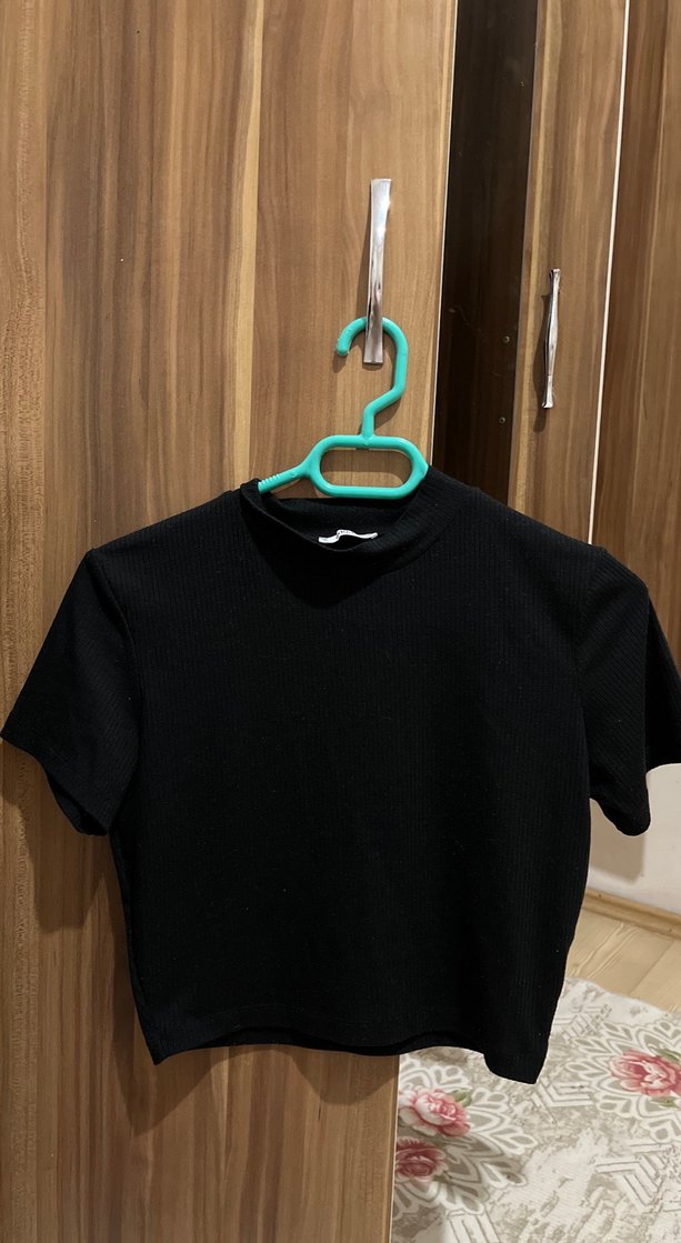 Siyah Kısa Kollu Yarım Balıkçı Kadın Tişört