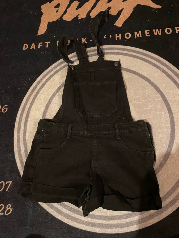 Siyah kot kumaştan, tokalı askılı ve ince kesime sahip kısa salopet. Ön cep detaylı, günlük kullanıma uygun rahat bir tarz sunar.