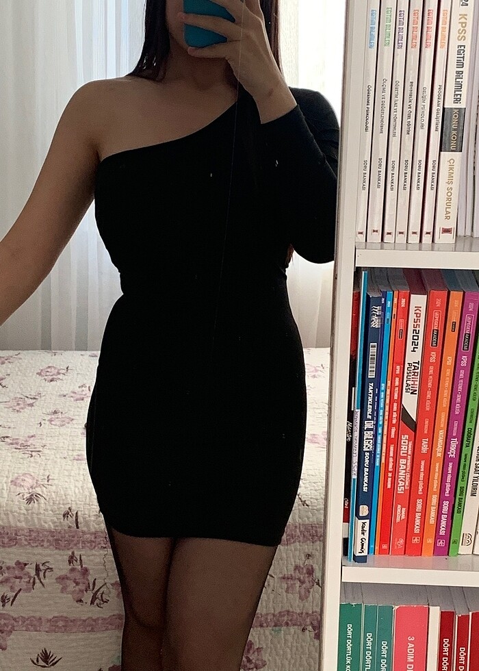 Siyah kısa omzu açık elbise
