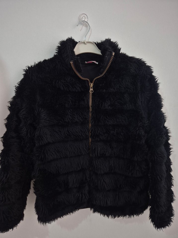 Siyah Kısa Peluş Kadın Ceket