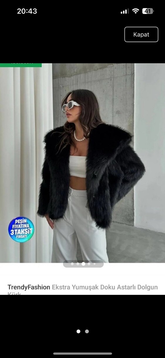 Siyah kısa peluş kürk ceket, uzun kollu ve v yaka, bol kesim ve ekstra yumuşak astarlı kumaşl. Rahat sokak stili için uygun.
