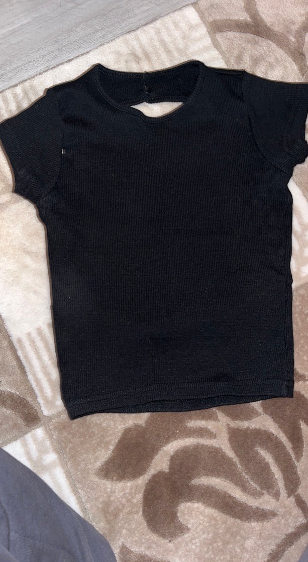 Yumuşak ve rahat kumaştan yapılmış siyah kısa kollu çocuk atleti. Üst üste giymek veya günlük kullanım için uygundur.