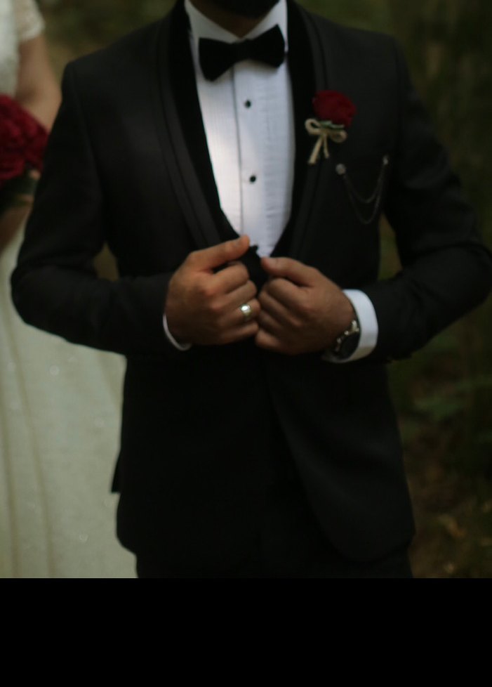 Fatih zeyrek damatlık ceker pantolon yelek papyon olaraktır giç bir sorunu yoktur ceketin yakasında ki kadife detay demontedir o çıkarılarak normal takım elbise ceketi olarakta kullanılabilir 48-6 drop