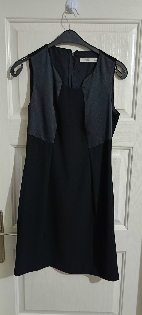 Kolsuz, V yakalı siyah midi elbise, drapeli detaylı, ofis kullanımı için uygun ve düzenli kesimlidir. Gotik tarzda şık bir seçim.