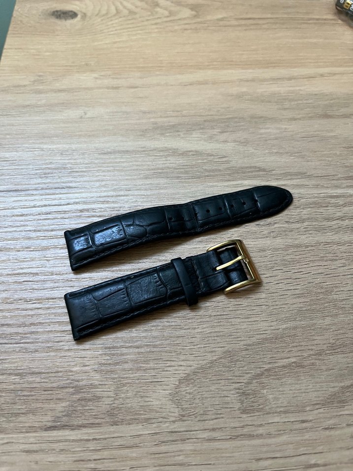 Dokulu desene ve altın renkli tokaya sahip siyah klasik erkek saat kayışı, sokak stili için uygun. ️